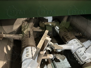 2. Валы и лопасти: вращающиеся валы движутся в противоположных направлениях, создавая силы смешивания. На валах установлены стойки с лопастями, которые перемещают материалы в разные направления и обеспечивают равномерное смешивание. Стойки и лопасти выполнены из высокопрочного износостойкого чугуна, срок эксплуатации два года.