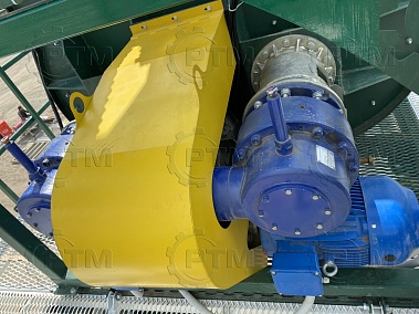 5. Привод: привод осуществляется от двух электродвигателей мощностью по  18,5 кВт каждый и двух коническо- планетарных редукторов, которые соединены ременной передачей с двигателями. Скорость вращения валов смесителя, 36 оборотов в минуту.