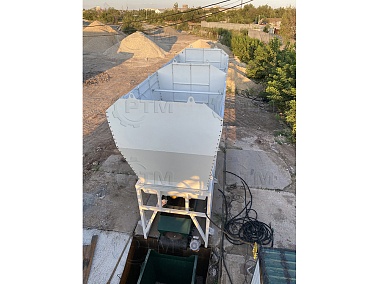 Баки устанавливаются на раме, каждый бак имеет две дозирующие заслонки, на заслонку установлен пневмоцилиндр, он отвечает за открытие и закрытие заслонки. Так же бункеры оборудованы вибродвигателями Oli MVE/300 (Италия), они необходимы для встряхивания инертного материала.