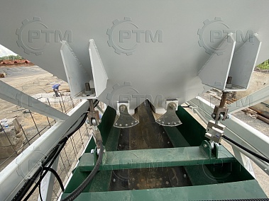 Баки устанавливаются на раме, каждый бак имеет две дозирующие заслонки, на заслонку установлен пневмоцилиндр, он отвечает за открытие и закрытие заслонки. Так же бункеры оборудованы вибродвигателями Oli MVE/300 (Италия), они необходимы для встряхивания инертного материала.