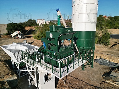 Данный завод производительность от 75 до 95 м3/час товарного бетона марки м200 или раствора. Объём загрузки бетоносмесителя 2250 литров, объем выгрузки готового бетона 1500 литров. Один цикл не более 55 секунд. Время работы цикла регулируется оператором бетонного завода.