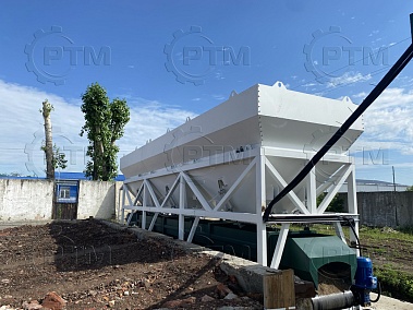 1.     Дозирующий комплекс СТ-40 (2 секции по 20 м3): состоит из двух до четырех бункеров для хранения инертных материалов (щебень, песок, отсев). На каждом бункере имеется два пневмо- затвора, необходимых для точной дозации материалов. При дозировании материалы попадают на весовой ленточный конвейер, весовые датчики фирмы CAS Ю.Корея, при наборе нужного количества материалов, заслонки закрываются, подача прекращается. Объем каждого бункера от 2,5 м3 до 20 м3, в зависимости от комплектации завода. Каждый бункер оснащен вибродвигателем MVE 300/3.