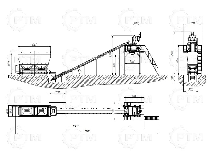 2.      После набора нужного количества материалов инертные попадают на наклонный ленточный конвейер с шевронной лентой. Ширина ленты 600 мм, длинна конвейера 16 метров.