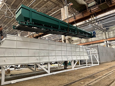 2. После набора нужного количества материалов инертные попадают в скиповый бак, далее скиповый бак поднимается и высыпает материалы в бетоносмеситель.