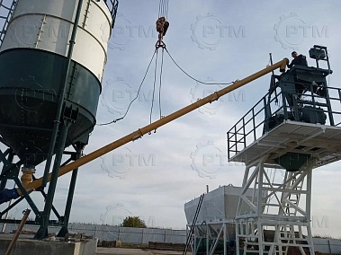 5. Склад цемента и подача в блок дозаторов. При необходимости завод комплектуется складом цемента (силосом или расстаривателем биг бэгов). Силос или расстариватель биг бэгов (опция) необходим для хранения цемента и различных сухих смесей. Транспортировка из силоса происходит с помощью шнекового конвейера. Силос необходимо подбирать из расчета трехдневного запаса цемента.