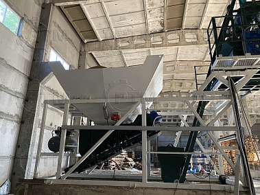 6. Выгрузка смеси: После завершения смешивания бетонная смесь выгружается из бетоносмесителя, лопатки расположены таким образом, чтобы при вращении они выгружали бетонную смесь из бетоносмесителя. Далее смесь поступает в миксер или на технологическую линию изготовления бетонных изделий.