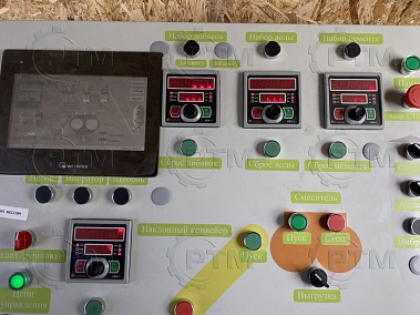 Транспортировка инертных, сброс, включение смесителя и выгрузка бетонной смеси производится оператором при помощи команд на панели пульта управления в ручном режиме.