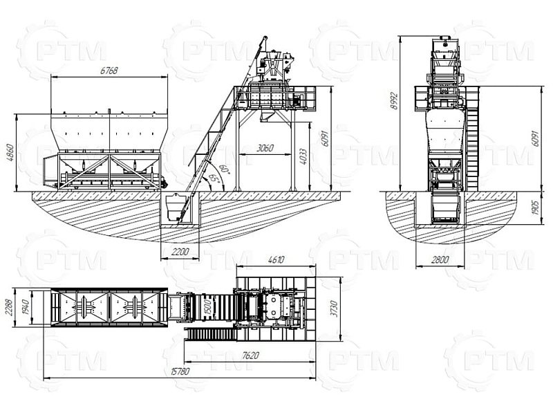 Данный завод производительность от 45 до 60 м3/час товарного бетона марки м200 или раствора. Объём загрузки бетоносмесителя 1500 литров, объем выгрузки готового бетона 1000 литров. Один цикл не более 55 секунд. Время работы цикла регулируется оператором бетонного завода.