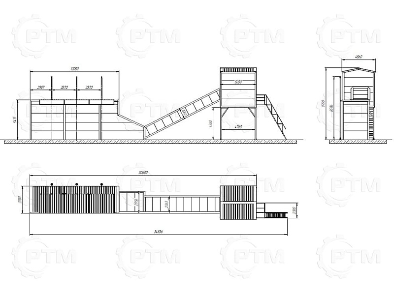 2.      После набора нужного количества материалов инертные попадают на наклонный ленточный конвейер с шевронной лентой. Ширина ленты 600 мм, длинна конвейера 16 метров.