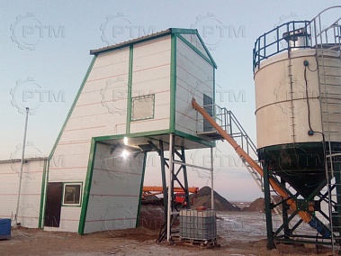 Данный завод производительность от 20 до 30 м3/час товарного бетона марки м200 или раствора. Объём загрузки бетоносмесителя 750 литров, объем выгрузки готового бетона 500 литров. Один цикл не более 55 секунд. Время работы цикла регулируется оператором бетонного завода.