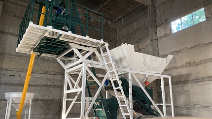 5. Склад цемента и подача в блок дозаторов. При необходимости завод комплектуется складом цемента (силосом или растаривателем биг бэгов). Силос или растариватель биг бэгов (опция) необходим для хранения цемента и различных сухих смесей. Транспортировка из силоса происходит с помощью шнекового конвейера. Силос необходимо подбирать из расчета трехдневного запаса цемента.